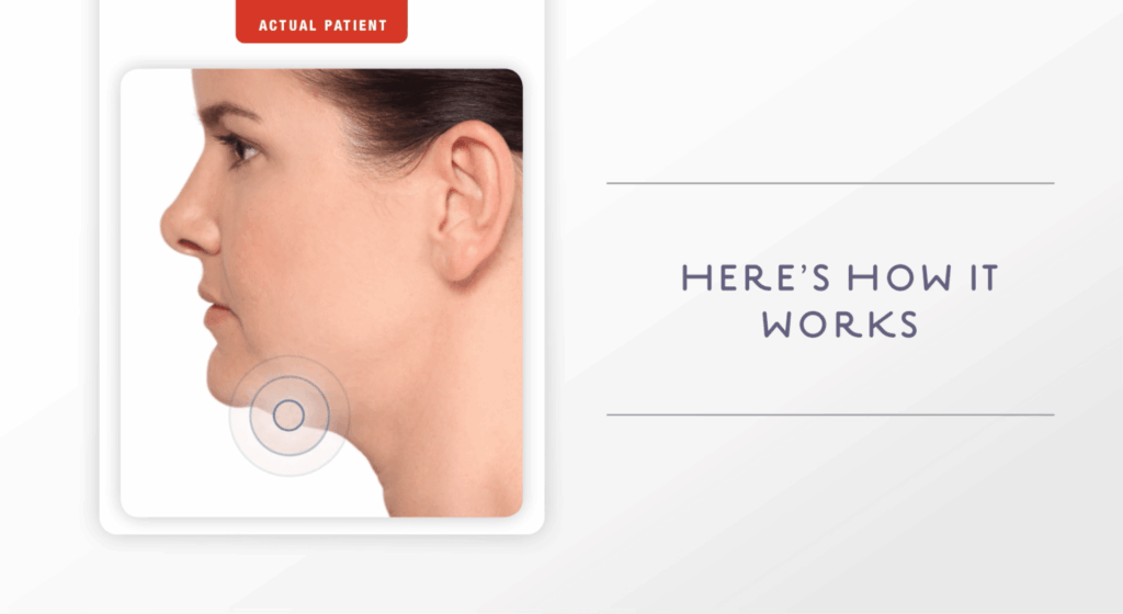 Kybella uses deoxycholic acid to break down fat cells in the submental area. Once these cells are destroyed, your body naturally eliminates them over several weeks. Because the fat cells can no longer store or accumulate fat, results are long-lasting.
